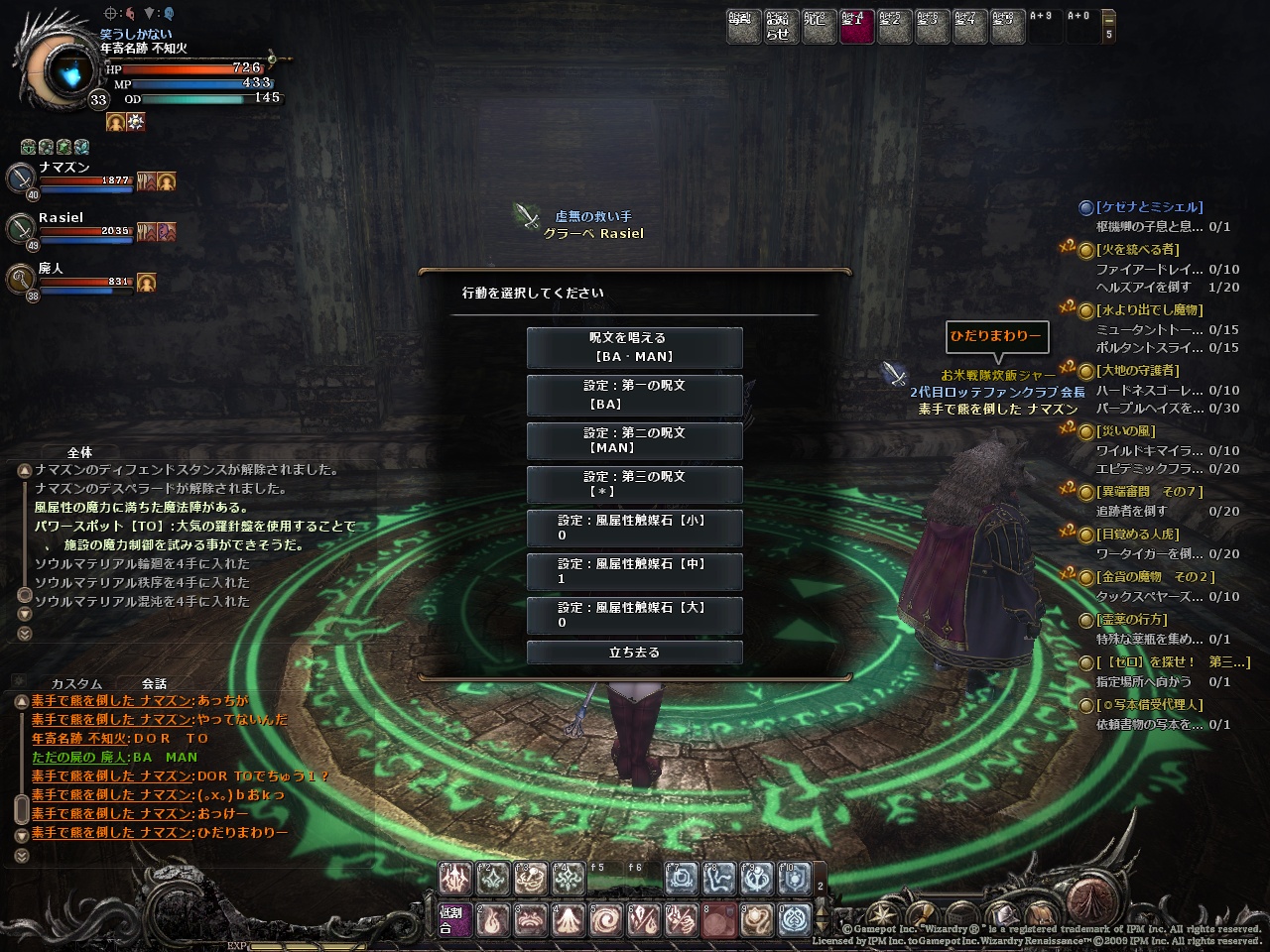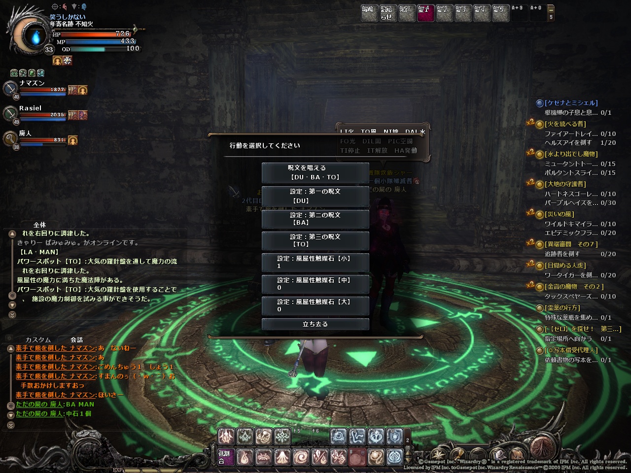 作る場合は呪文【地(NI)・除去(FIS)・闇(DIL)】